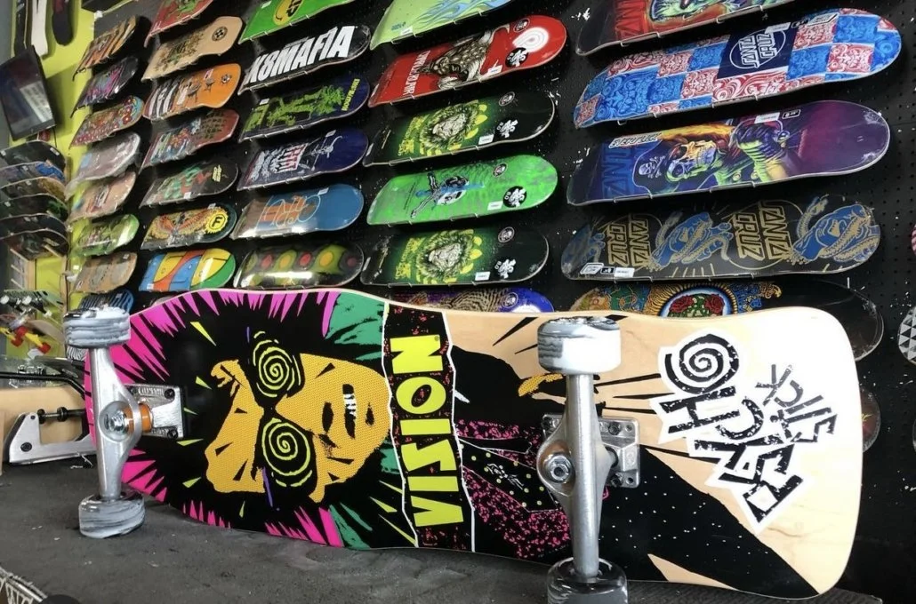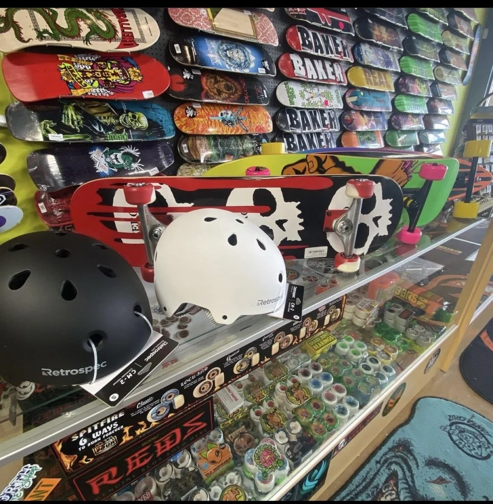 We have several complete’s in stock ready for you to take a look at. We would also be stoked to build you a complete while you hang out. That way you pick out the deck, trucks, wheels, bearings and grip tape you want. We are here to make it your custom board set up exactly how you want. Come on in to see us and we can get you totally hooked up.