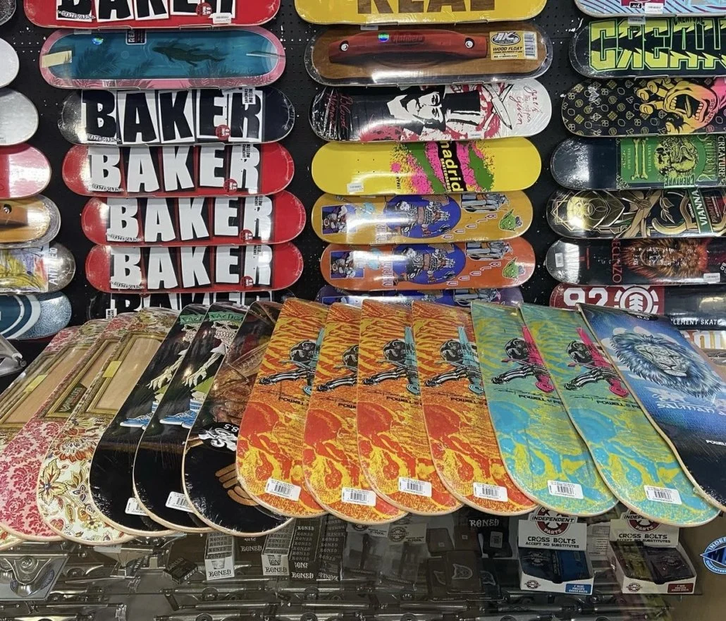From fresh current model decks to reissue classics from the 80’s we got you. Whether you want to ride your favorite skaters pro model or just like a certain graphic we’ll help you pick the perfect deck for you. We have lots of different sizes and styles available for every level of skater out there. We sell decks off of the wall everyday so our selection is changing non stop. We get new shipments in every week so we can keep the variety fresh all of the time. If you don’t see exactly what you are looking for ask us and we can order it in for you